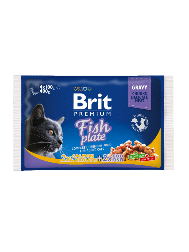 Treat your cat to a gourmet dining experience with Brit Premium Gravy Fish Plate Cat Food. Each pouch features tender chunks of delicate fish in a savory gravy, providing a delectable meal that your cat will love. This Fish Plate variety pack includes a mix of salmon, trout, and cod fish, offering a diverse and flavorful menu to satisfy your cat’s cravings. With four convenient pouches, each containing 100g of food, it’s the perfect way to add variety to your cat’s diet while providing essential nutrients for their health and vitality.
