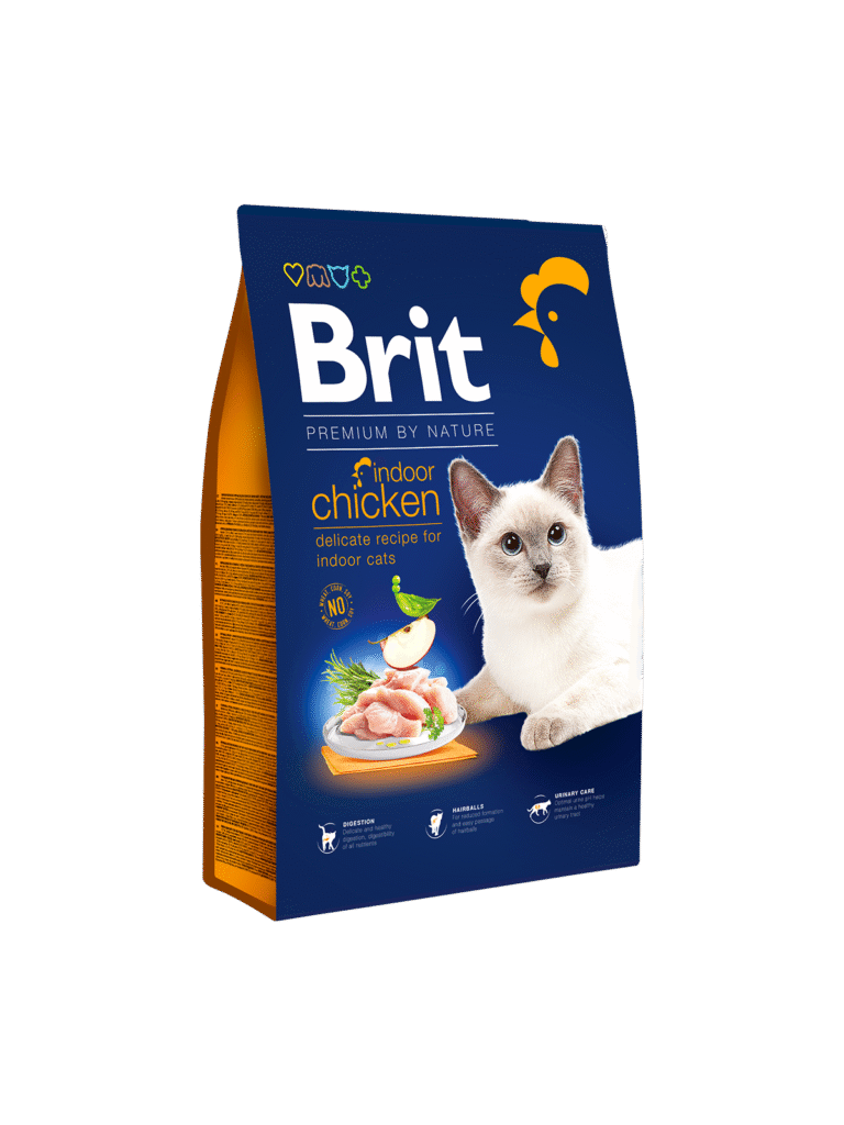 Keep your indoor cat happy and healthy with Brit Premium Indoor Chicken Cat Food. Formulated specifically for indoor cats, this premium recipe features real chicken as the main ingredient to provide essential nutrients while helping to control hairballs and support urinary tract health. With a balanced blend of ingredients, including fiber and antioxidants, it promotes healthy digestion and immune function, ensuring your indoor cat thrives in the comfort of your home.